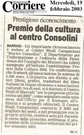 Corriere Romagna – Premio della cultura al Centro Studi Campaniani (19-02-2003)