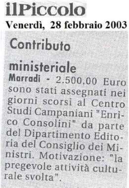 Centro Studi Campaniani "Enrico Consolini" Premio Cultura Presidenza del Consiglio dei Ministri 2002