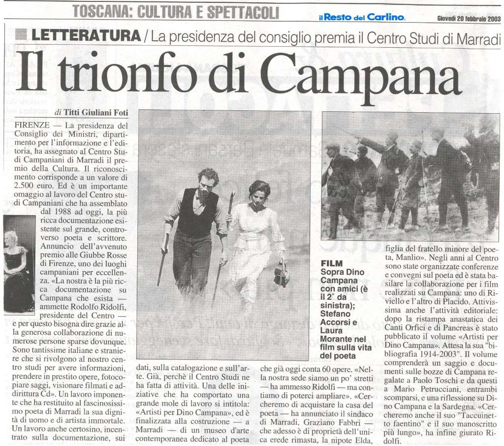 Il Resto del Carlino-Il trionfo di Campana-Giovedì 20.feb.03
