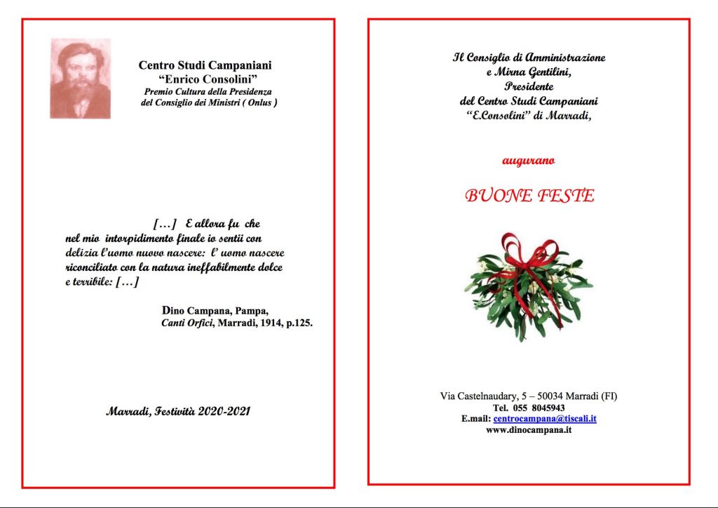 Gli auguri 2020/2021 del Centro Studi Campaniani “Enrico Consolini”