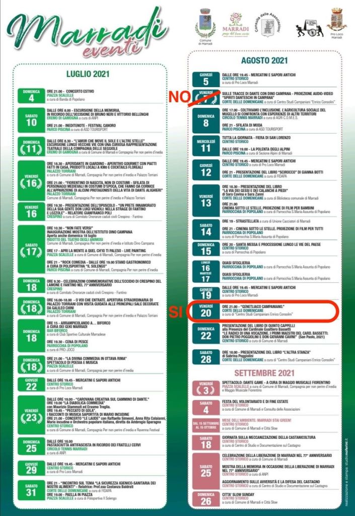 L 7 AGOSTO NON E’ PREVISTA LA PROIEZIONE DI “SPIRITI DANTESCHI IN CAMPANA”![]()