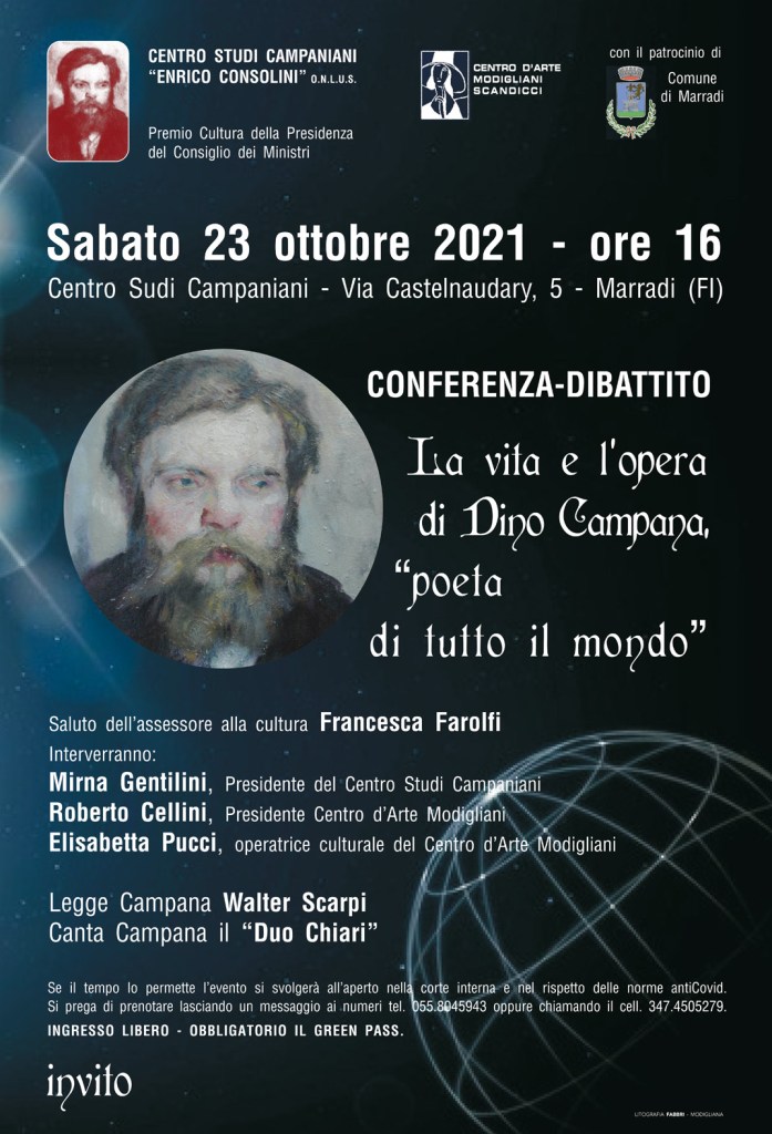 Si parlerà della vita e dell’opera di Dino Campana, sottolineandone l’universalità, sabato 23