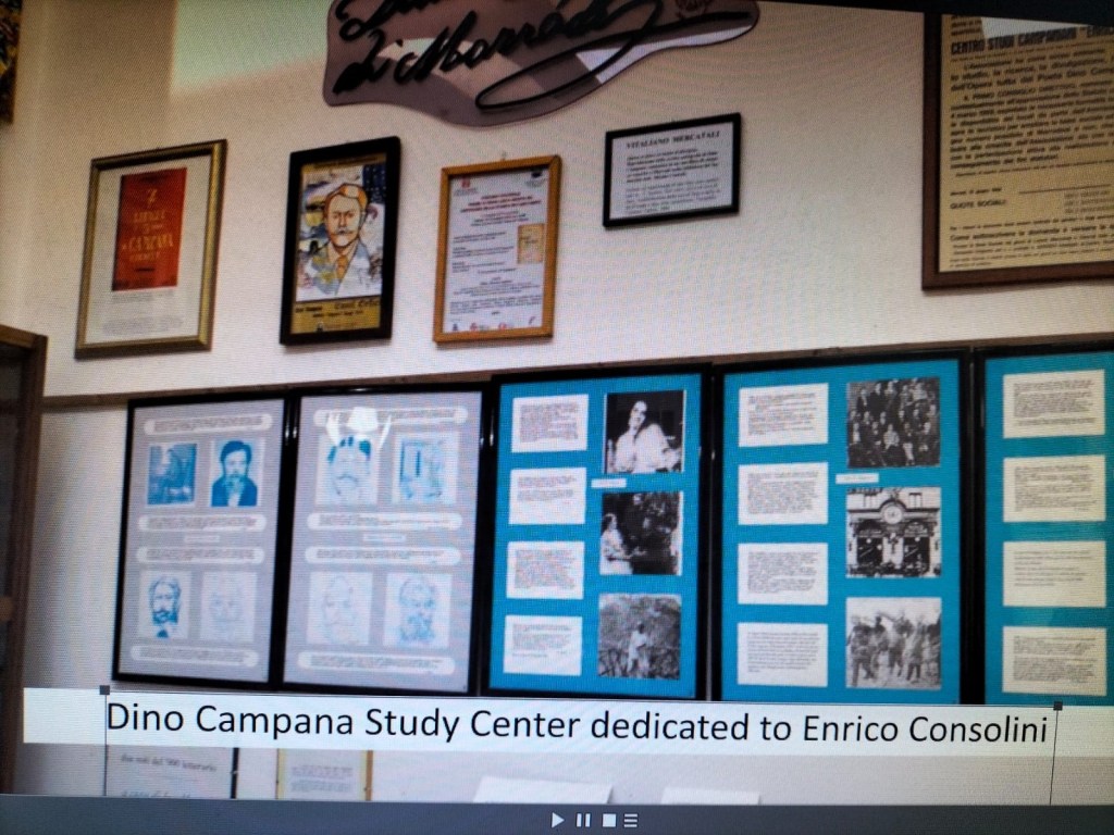 Siete invitati venerdì 17 dicembre p.v. alle ore 11.00 all’evento in streaming per mostrare in prima assoluta il video “Dino Campana visivo e visionario: dalle immagini poetiche alle rappresentazioni plastiche”, progetto realizzato nell’ambito del bando “Toscanaincontemporanea2021 – GiovaniSì” della Regione Toscana per far conoscere ed apprezzare il Museo “Artisti per Dino Campana” che si trova a Marradi in via Castelnaudary n° 7.
