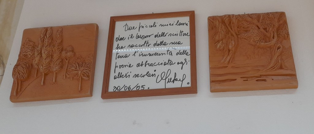 Nella giornata di martedì 11 gennaio, nella Cattedrale di San Pietro Apostolo in Faenza, si sono svolti i funerali di Muky, Wanda Berasi, scomparsa il 7 gennaio, all’età di 95 anni. Alla funzione religiosa e alla commemorazione ha partecipato anche Silva Gurioli del Consiglio del Centro Studi Campaniani “Enrico Consolini”, amica personale di Muky. Muky accompagnò il dono delle formelle al Centro Studi scrivendo: “Due piccoli miei lavori dove il percorso dello scrittore ha raccolto dalla sua terra l’immensità della poesia abbracciata agli alberi secolari”.