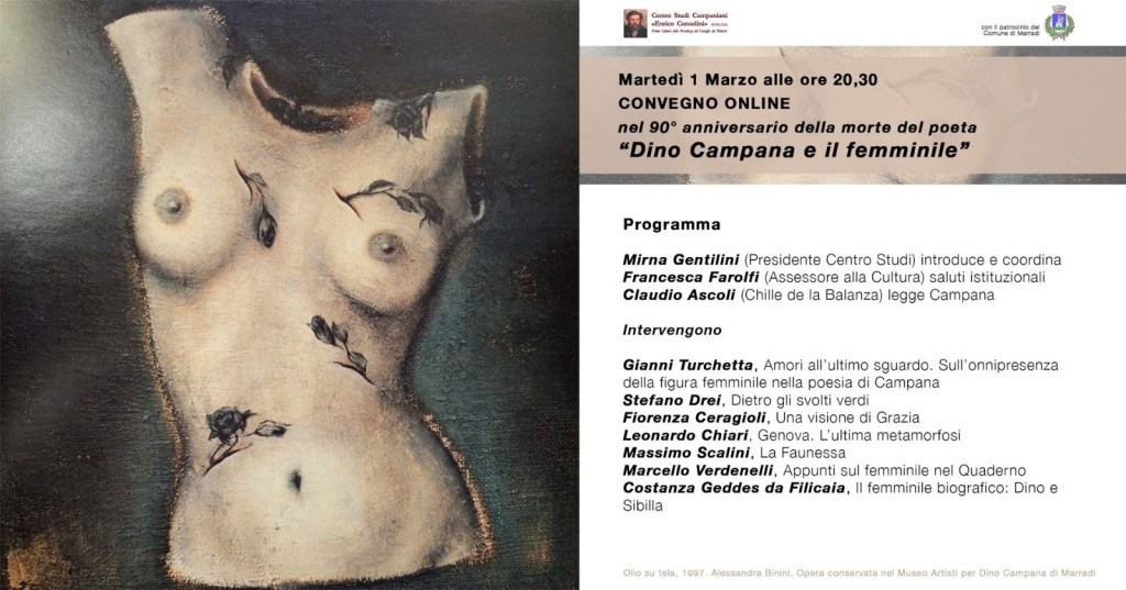 1 marzo, 90° anniversario della morte di Dino Campana, Convegno on line: ” Dino Campana e il femminile”