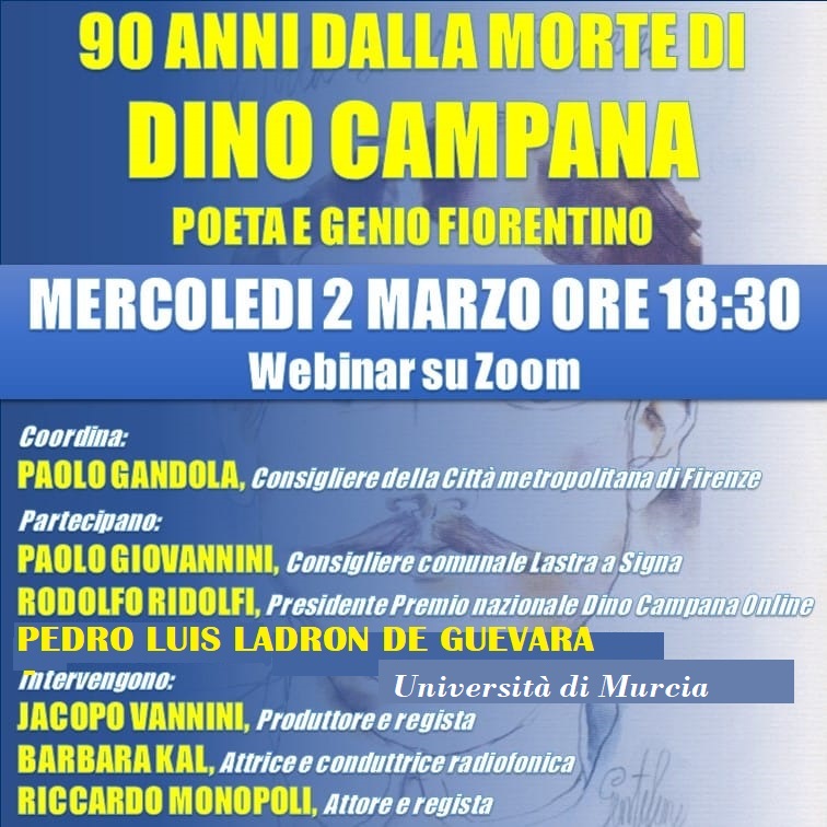MARRADI – È stato un convegno molto partecipato quello in onore di Dino Campana, che si è tenuto il 2 marzo online in occasione dei 90 anni dalla scomparsa del poeta. “Il convegno – racconta Paolo Gandola, organizzatore dell’evento – nato da una chiacchierata con Rodolfo Ridolfi, voleva essere un momento di ricordo di uno dei grandi artisti del novecento italiano proprio nei giorni in cui ricorrono i 90 anni dalla sua morte, avvenuta proprio il 1 marzo del 1932. Dico artista, non a caso, perché se è vero che Campana era un poeta e scrittore, il suo essere visivo – come certificato da illustri conoscitori e studiosi della poetica campaniana – lo fa diventare davvero quasi un pittore a calamaio”. Al convegno, oltre che a Rodolfo Ridolfi e Paolo Gandola, erano presenti Paolo Giovannini, Consigliere comunale di Lastra a Signa (Comune dove Dino Campana ed il padre risiedettero dal 1916 al 1918), il produttore Jacopo Vannini che nel novembre 2021, su commissione del Centro Studi di Marradi, ha realizzato il video “Dino Campana Visivo e visionario dalle immagini poetiche alle rappresentazioni plastiche”, trasmesso durante la serata; Barbara Kal, attrice e conduttrice radiofonica la quale ha recitato nel video realizzato da Vannini; Riccardo Monopoli, anch’esso attore e regista, membro della giuria del premio Dino Campana Online ed il professore e studioso campaniano Pedro Luis Ladron de Guevara Mellado autore, tra gli altri, del volume “Campana dal Vivo”. “Insomma – conclude Gandola – ieri sera si è tenuto un convegno dal grande valore storico, scientifico e culturale e per questo mi sento di ringraziare tutti gli illustri partecipanti che con il loro contributo fondamentale e speciale hanno reso onore alla poetica campaniana e hanno realizzato, insieme con me, un momento di giusto e doveroso ricordo del poeta metropolitano: Dino Campana. Inoltre, vale ricordare che oggi, 3 marzo 2022, ricorrono peraltro gli 80 anni dalla traslazione dei resti di Dino Campana dal cimitero di San Colombano alla cripta nella Badia di San Salvatore a Badia a Settimo, a Scandicci”.